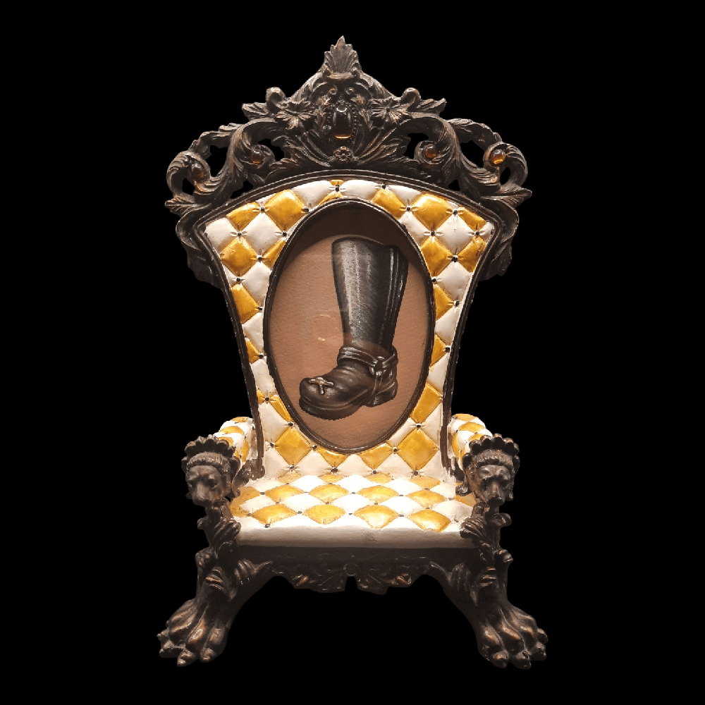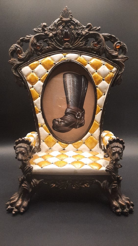 original drawing in vintage three dimensional heavy ornate chair frame